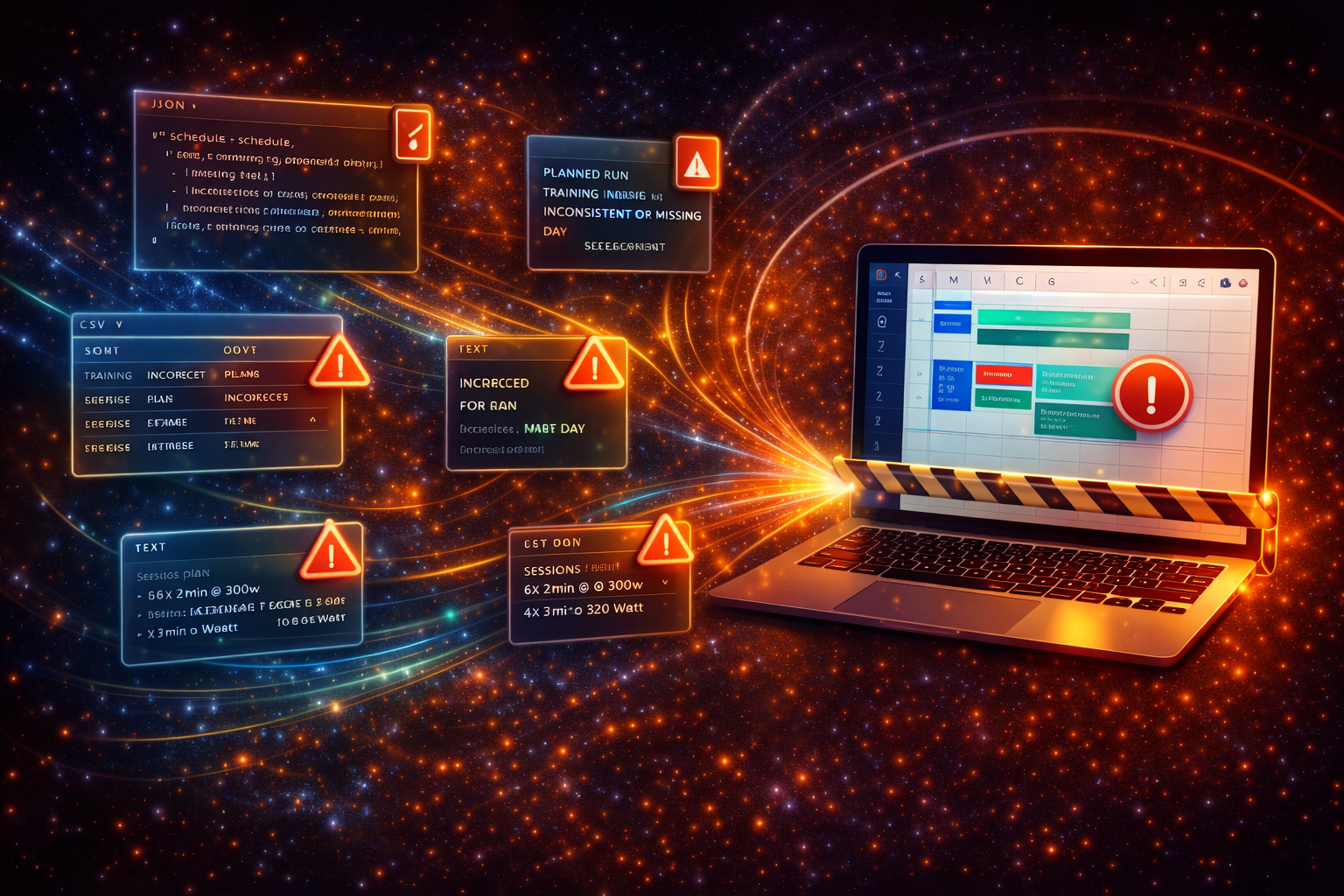 PaceKeeper stellt sicher, dass ein Plan vollständig und konsistent ist – bevor du ihn exportierst. Fehlende Tage/Einheiten und ungültige Strukturen werden früh erkannt. Das reduziert kaputte Imports und spart Nacharbeit.